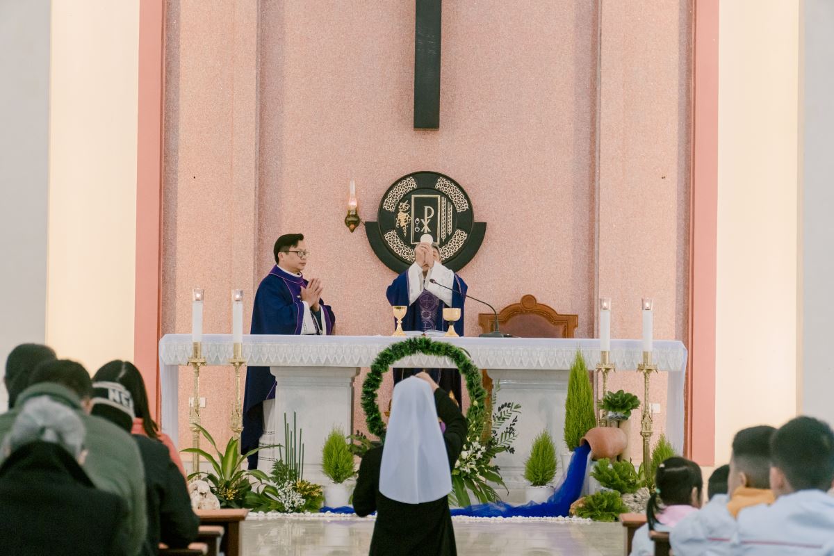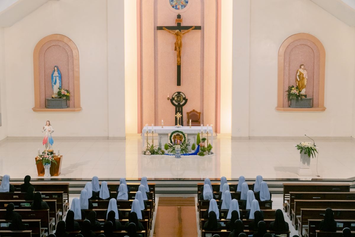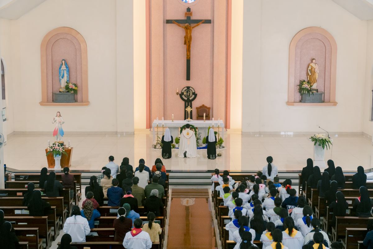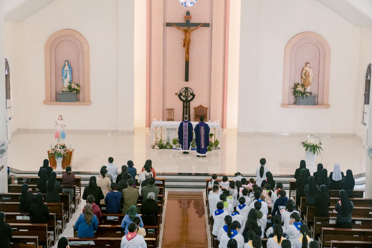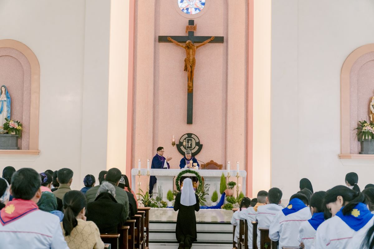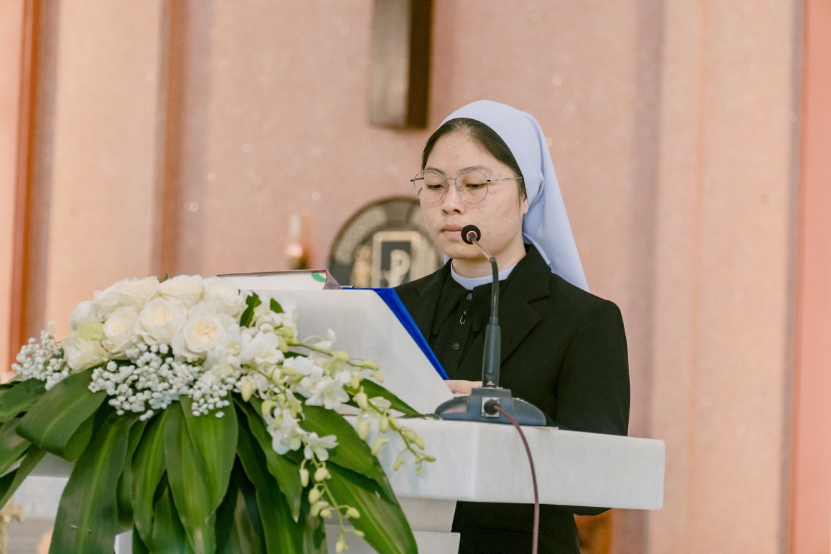 Thánh lễ do cha Giuse Nguyễn Đình Tuyến chủ tế, cùng đồng tế với cha Giuse Lê Thanh Nghị. Tham dự Thánh lễ, có thầy xứ Giuse Chu Văn Thái, quý chị em thuộc các khối đang phục vụ tại Nhà Mẹ Hội dòng, cùng quý chị em từ các cộng đoàn lân cận như Bách Lộc, Sơn Tây, các hội viên Hiệp hội Tín hữu Mến Thánh Giá, Thiếu Nhi Thánh Thể xứ đoàn Đa Minh Savio và cộng đoàn giáo xứ Chính Tòa.