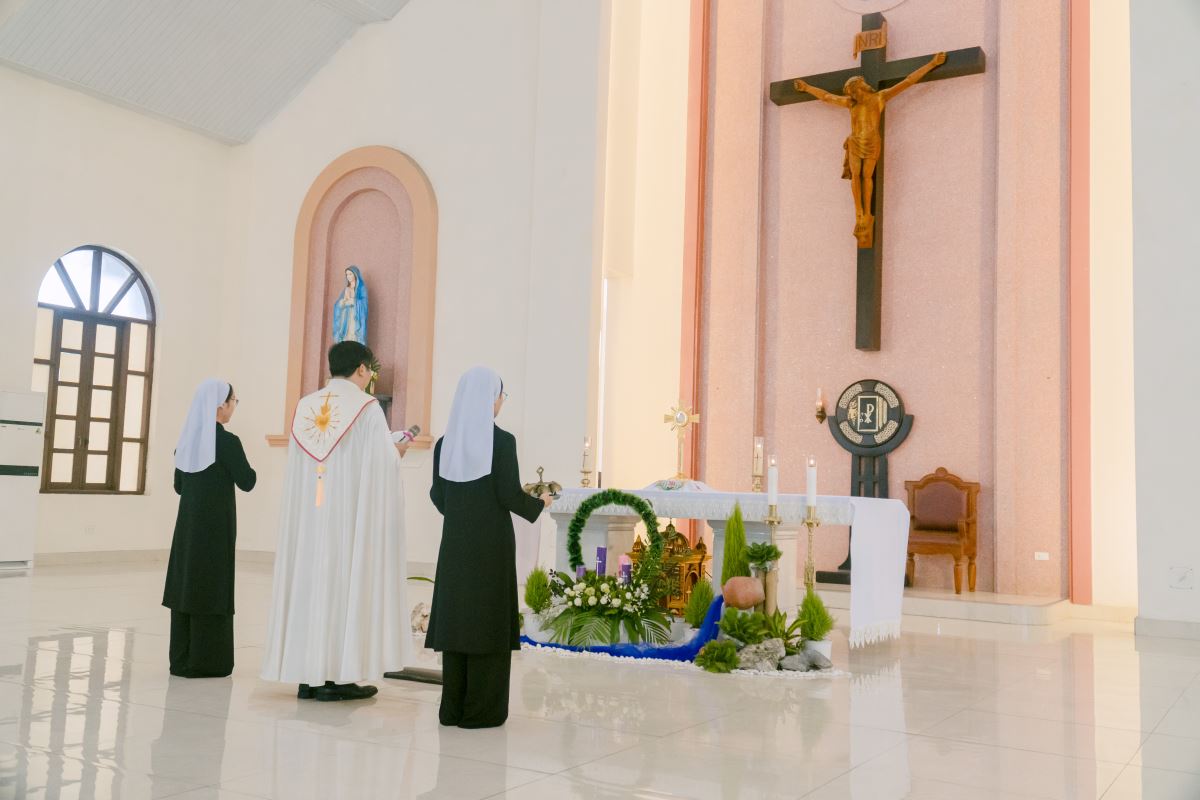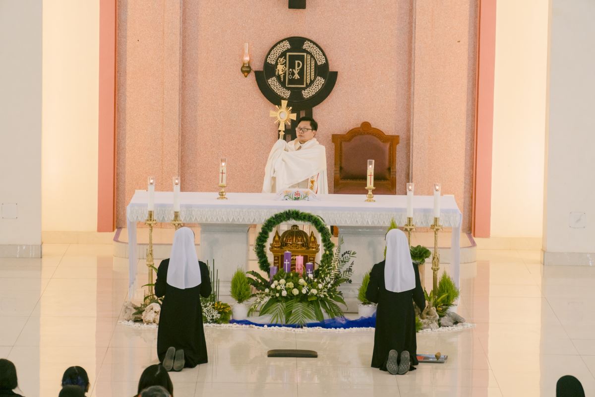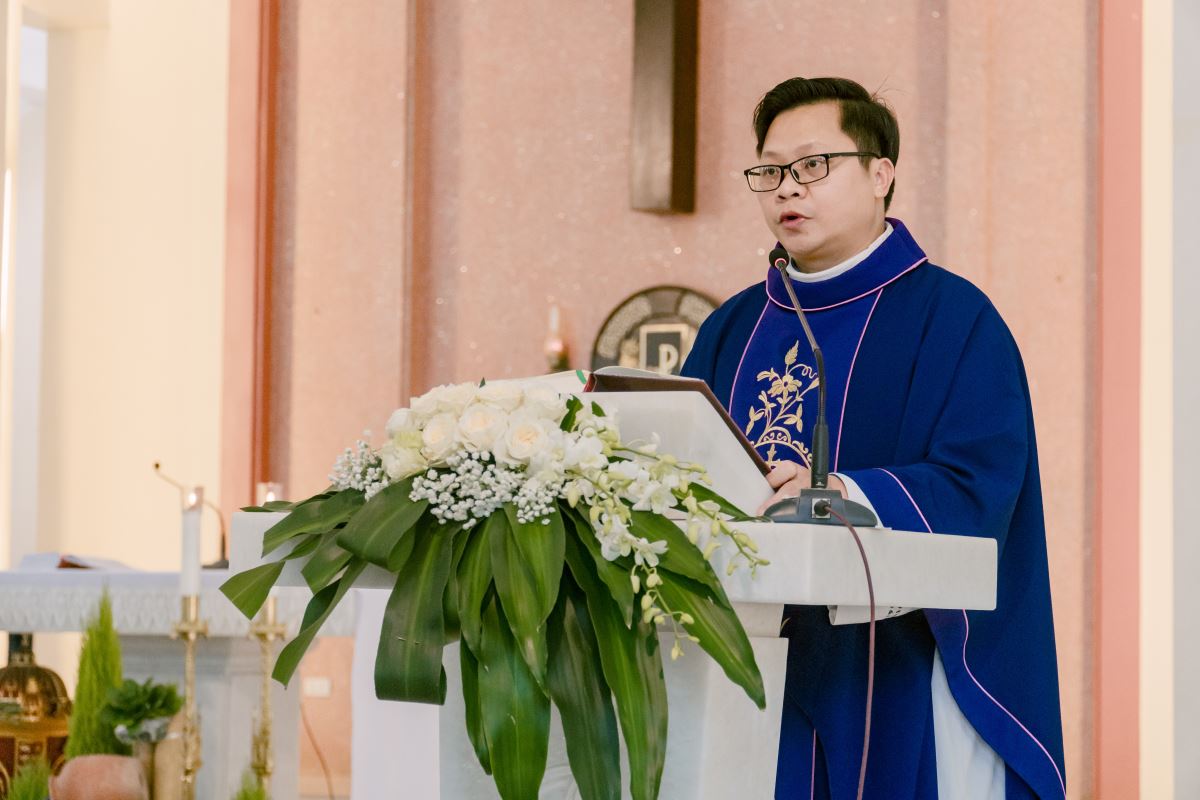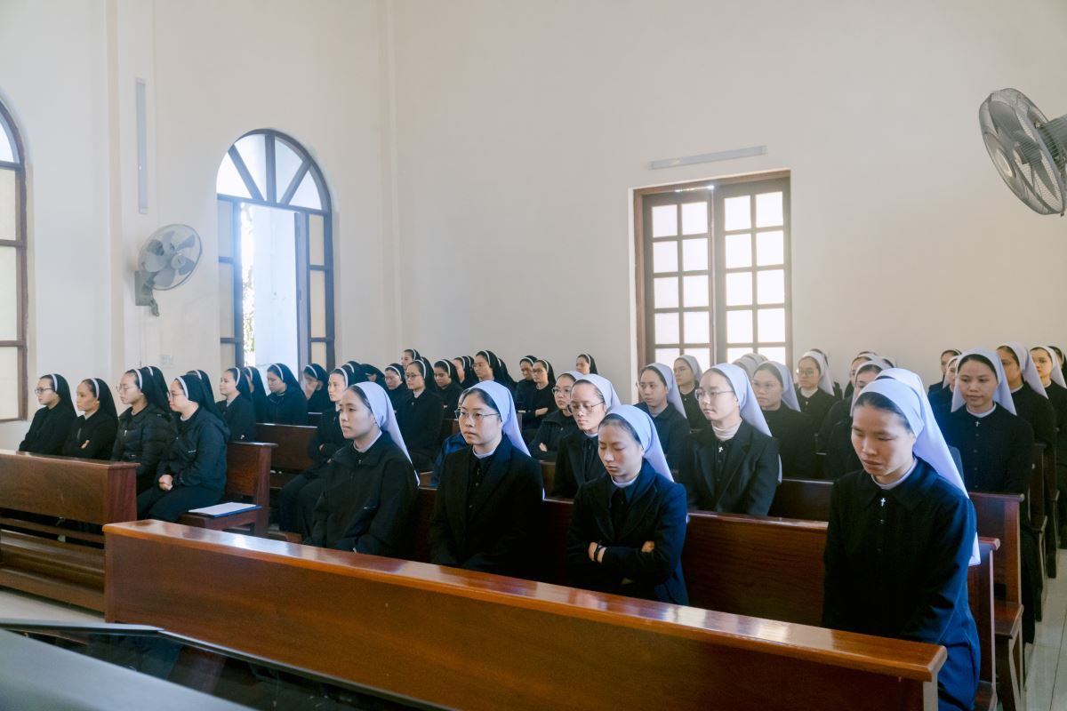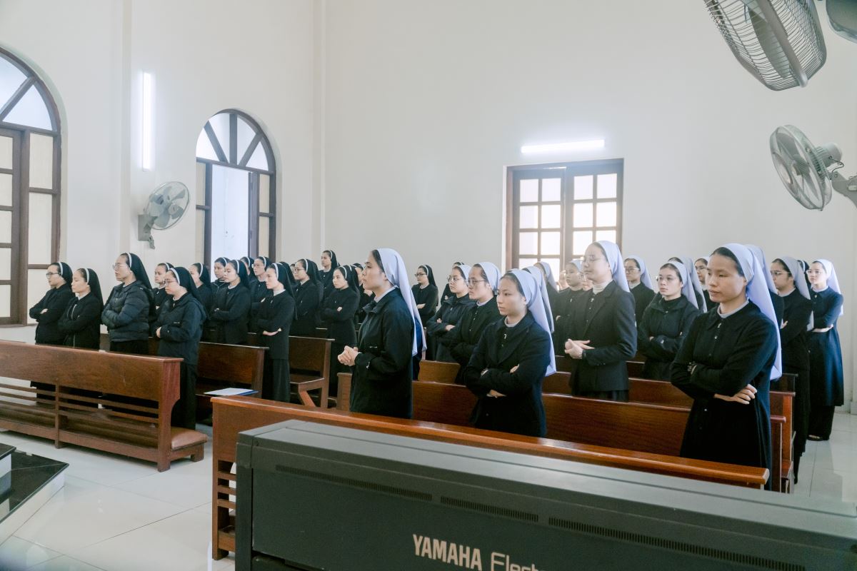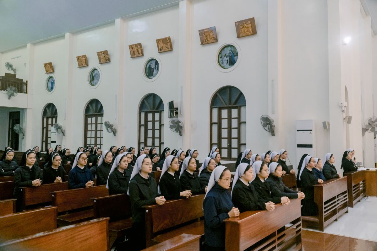 Mở đầu Thánh lễ, cha chủ tế mời gọi cộng đoàn bước vào Năm Phụng vụ mới trong tâm tình Mùa Vọng – mùa của chờ đợi và hy vọng. Trong bầu khí linh thiêng ấy, mọi người cùng hướng lòng về mầu nhiệm Chúa Giáng Sinh đang gần kề, đồng thời chuẩn bị cho ngày Ngài sẽ trở lại trong vinh quang. Cha tha thiết nhắn nhủ mỗi người hãy tỉnh thức và cầu nguyện, để tâm hồn luôn rộng mở và sẵn sàng đón Chúa đến. Trong tâm tình ngày chầu lượt, cha cũng mời gọi cộng đoàn hiệp ý dâng lời tạ ơn và cầu nguyện cho Hội dòng, xin Chúa tuôn đổ muôn phúc lành trên các cộng đoàn, và cách riêng nhớ đến các chị em đã được Chúa gọi về.